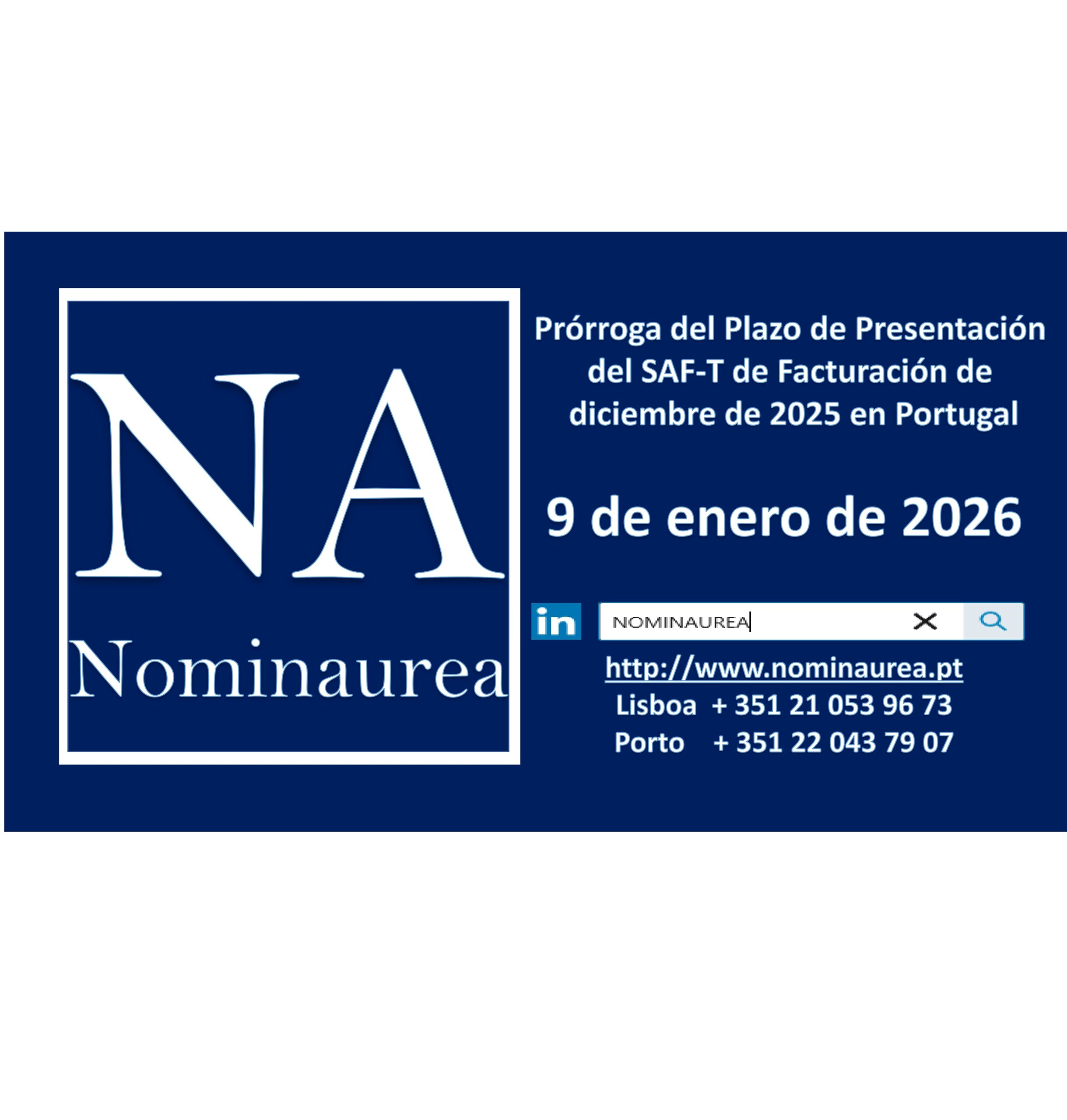 A finales de 2025, la Secretaría de Estado de Asuntos Fiscales (SEAF) publicó el Despacho SEAF n.º 166/2025 – XXV, que establece la prórroga del plazo de presentación del archivo SAF-T de facturación correspondiente al mes de diciembre de 2025 hasta el 9 de enero de 2026. E